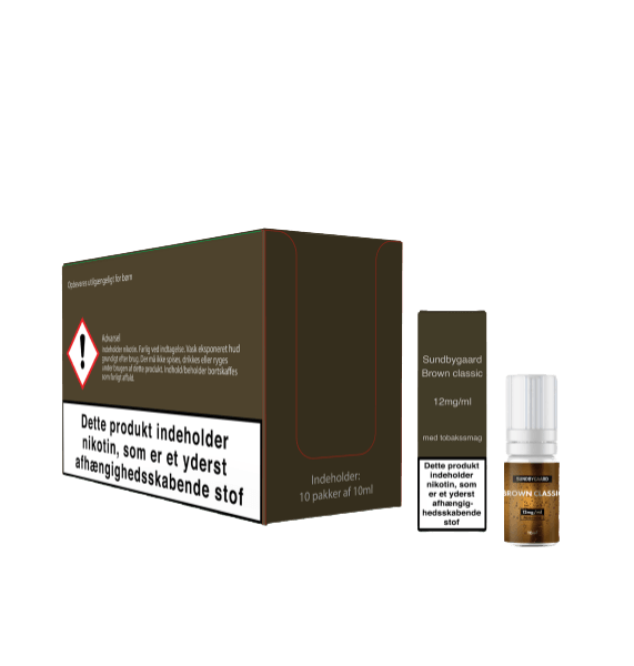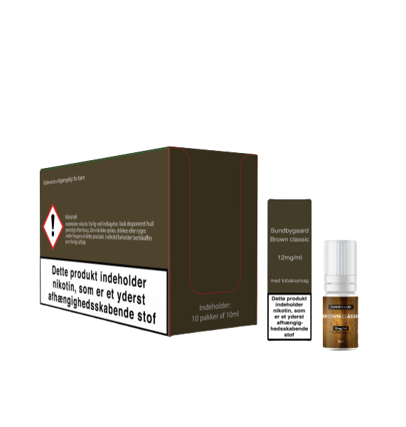 Brown Classic har en tobaksinspireret profil og er udviklet som en del af Sundbygaards klassiske serie. E-væsken fås i flere nikotinstyrker: 0 mg, 6 mg, 12 mg og 18 mg, så styrken kan tilpasses individuelt behov.