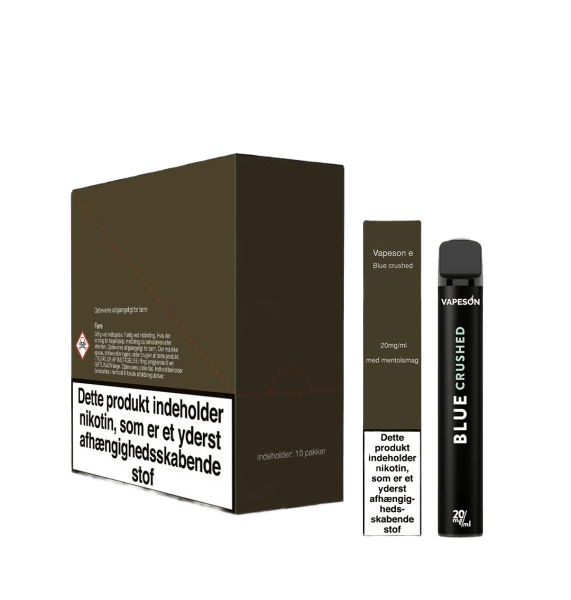 Vapeson E – Blue Crushed er klar til brug med det samme og kræver ingen opladning eller vedligeholdelse. Denne puffbar er designet til både nye og erfarne dampere, der ønsker en simpel og kraftfuld mentholoplevelse. Med sit slanke og diskrete design passer den nemt i lommen og er altid klar til at give en kølende mentholfornemmelse.